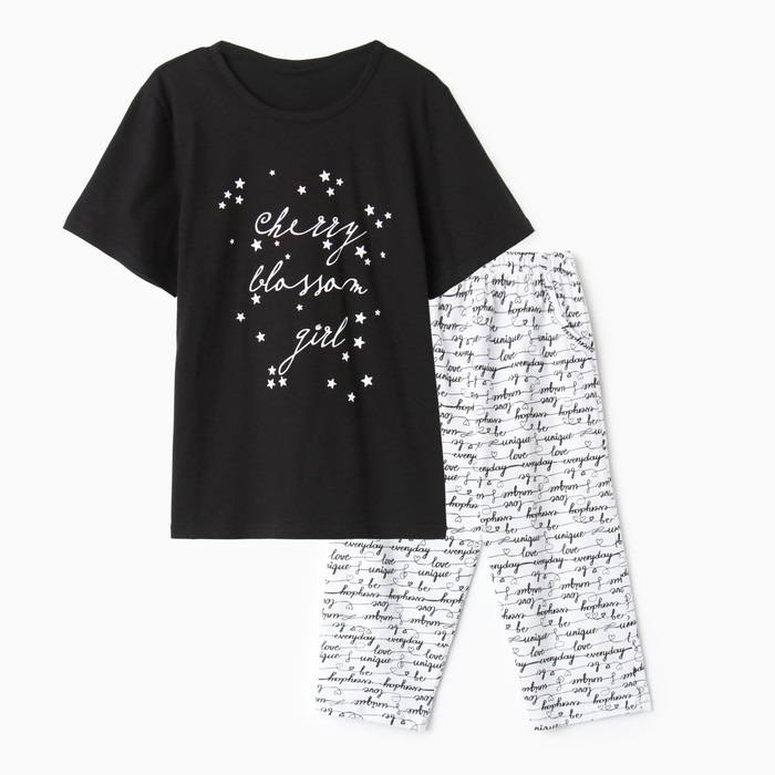 Пижама женская (футболка, бриджи), размер 44, цвет чёрный, серый