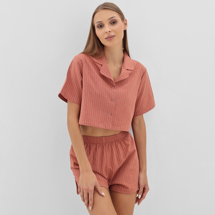 Пижама женская (рубашка и шорты) KAFTAN "Полоска" р.40-42, коралл