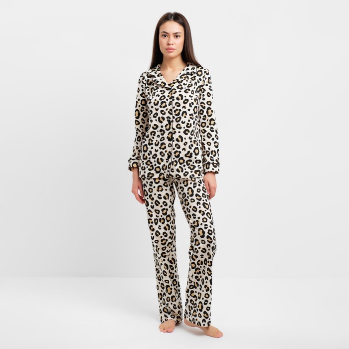 Пижама женская (рубашка, брюки) KAFTAN «Леопард», голубая, размер 52-54
