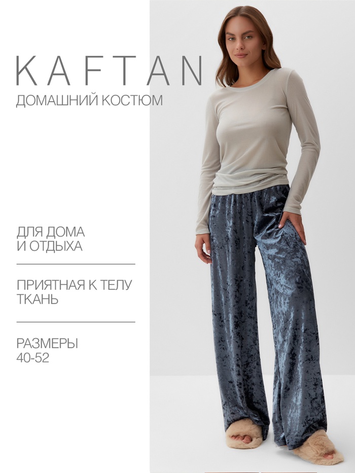 Пижама женская (лонгслив, брюки) KAFTAN «Бархат», размер 44-46, цвет серый, голубой