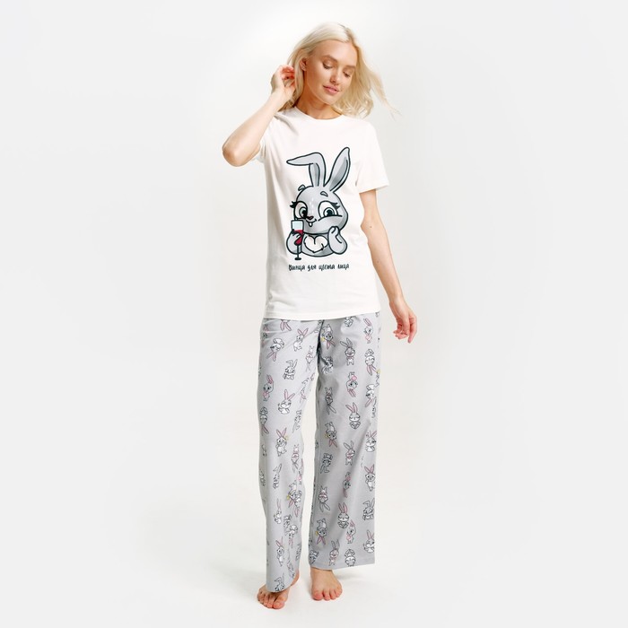 Пижама новогодняя женская (футболка и брюки) KAFTAN «Зайчик», размер 40-42