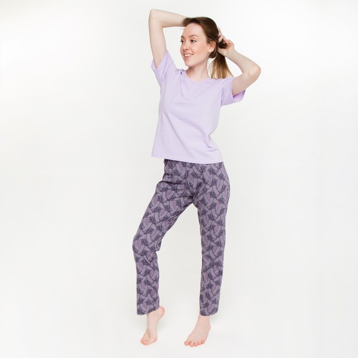 Комплект женский (футболка, брюки), сиреневый колосы, размер 44