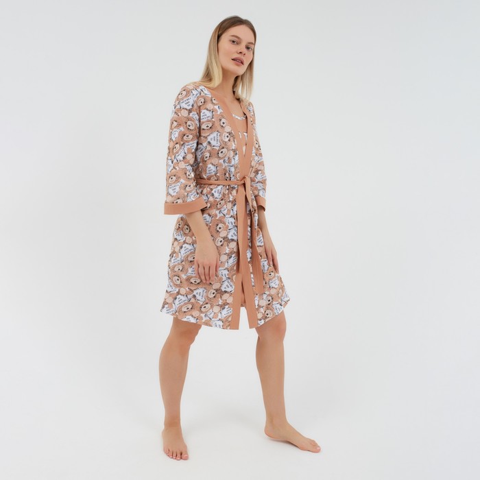 Комплект женский домашний (халат/сорочка), цвет бежевый, размер 46