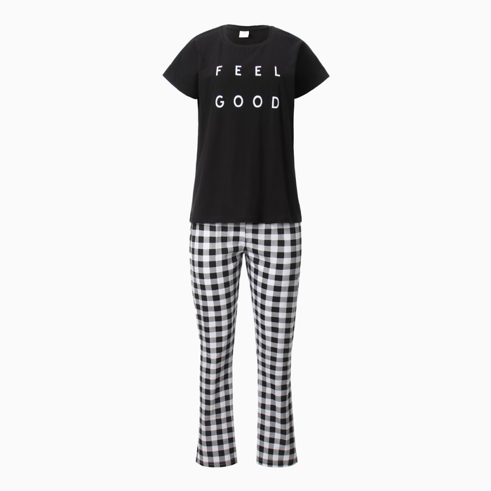 Пижама женская (футболка, брюки) Feel good, чёрная, размер 52