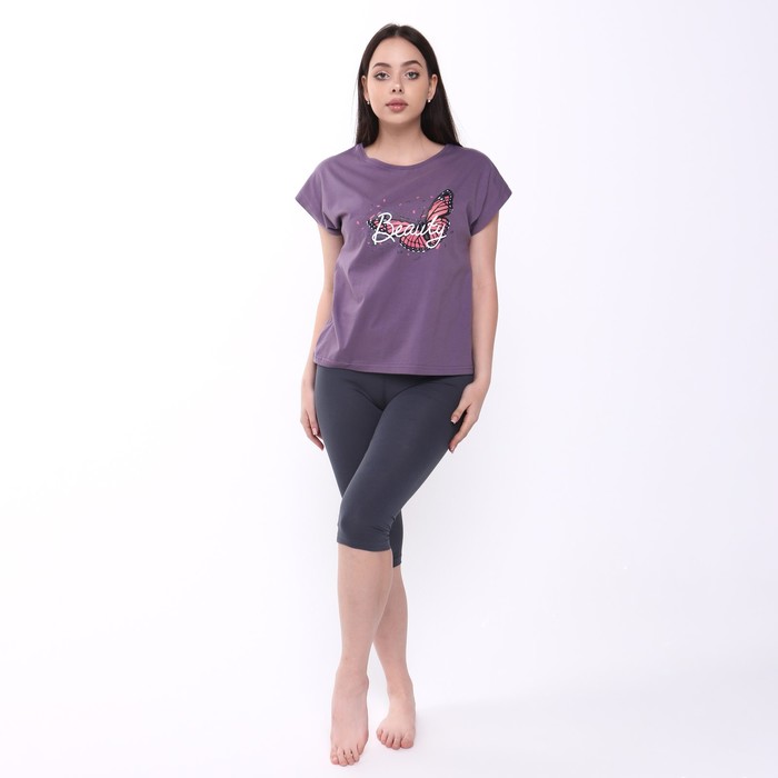 Комплект женский (футболка/бриджи), цвет фиолетовый/серый, размер 52