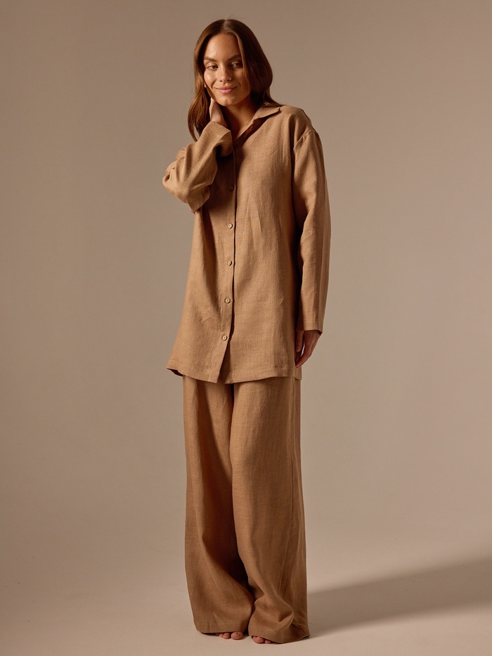 Пижама женская (рубашка, брюки) SL Home Linen, размер 44-46, кофейная