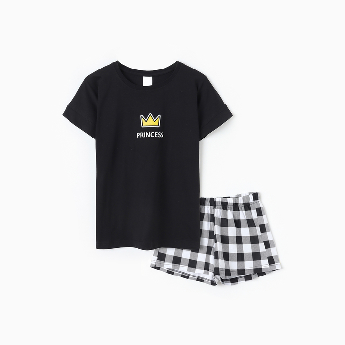 Комплект женский домашний (футболка, шорты) «Princess», цвет чёрный, размер 48