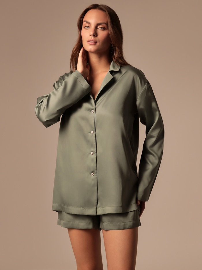 Пижама женская (рубашка, шорты) SL HOME Tensel Home, размер 52-54, зелёная