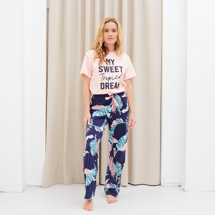 Футболка домашняя с карманом женская KAFTAN Tropical dream, размер 40-42