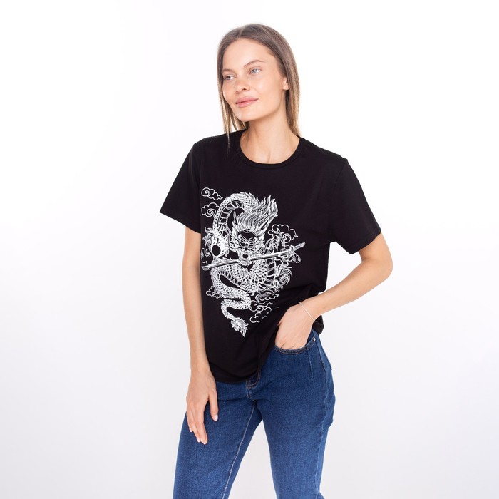 Футболка женская «Дракон», принт белый, чёрный, размер 48