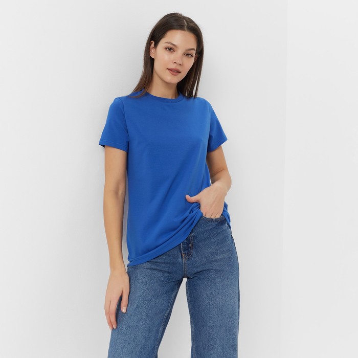 Футболка однотонная женская MINAKU: Basic line, цвет электро, размер 54