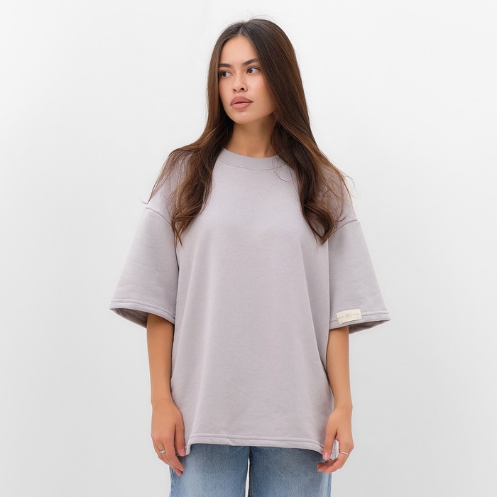 Футболка с нашивкой женская MIST Base, светло-серая, размер 42