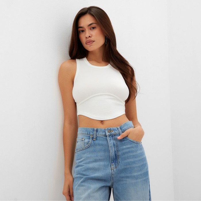 Топ спортивный на широких бретелях, размер М, цвет молочный