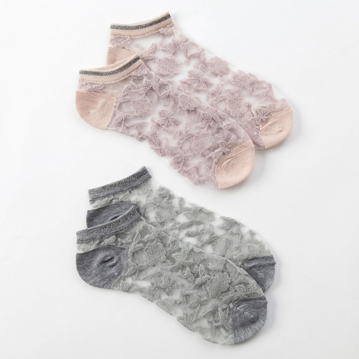 Набор стеклянных женских носков 2 пары "Цветочки", р-р 35-37 (22-25 см), цвет бел/беж