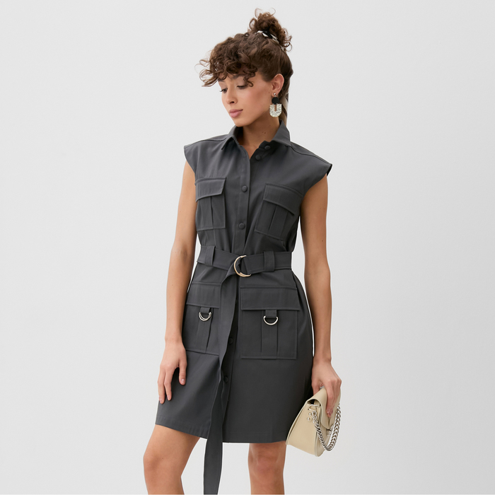Платье женское MINAKU: Safari мини цвет графит ,р-р 44