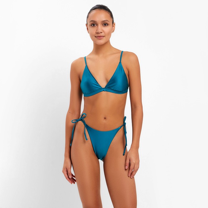 Купальник раздельный однотонный с завязками женский MINAKU, зелёный размер 48
