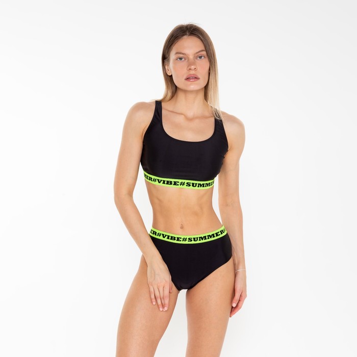 Купальник женский раздельный, цвет чёрный/салатовый, размер 44