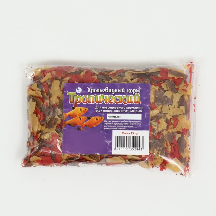 Хлопьевидный корм для рыб "Тропический", 15 г