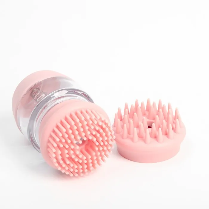 Щётка для мытья и массажа собак с ёмкостью для шампуня и 2 насадками, 5.8х5.8х9 см, розовая