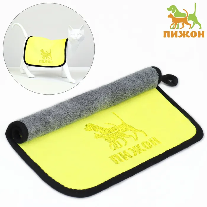 Полотенце для животных супервпитывающее, среднее, 30 х 60 см, жёлтое