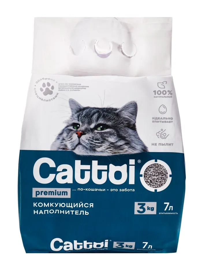 Наполнитель минеральный комкующийся Cattoi Premium 3 кг,пластиковый пакет