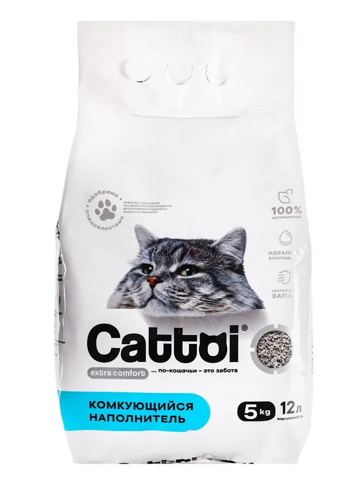 Наполнитель минеральный комкующийся Cattoi Extra Comfort 5 кг,пластиковый пакет
