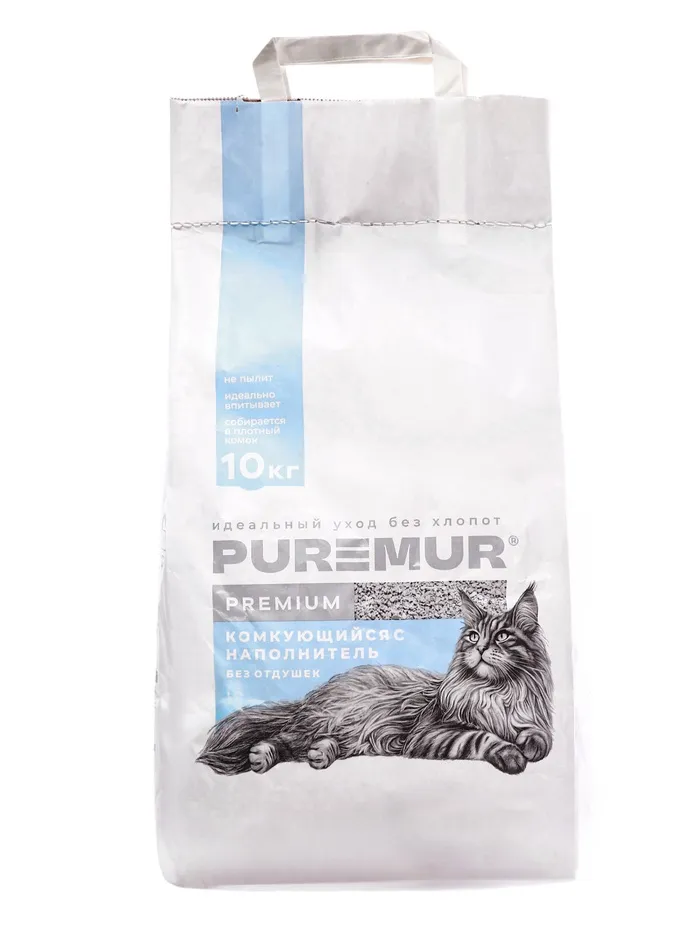 Наполнитель минеральный комкующийся PureMur Premium 10 кг,бумажный пакет