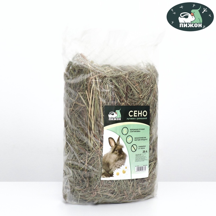 Сено луговое с люцерной «Пижон» для грызунов, 20 л, 500 г