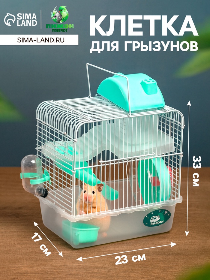 Клетка для грызунов «Пижон», 23×17×33 см, прозрачная, зелёное наполнение