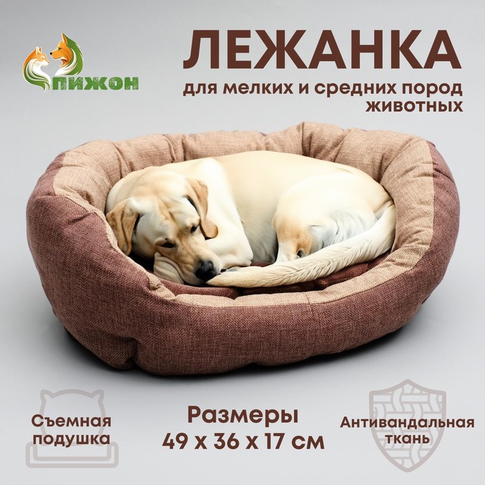 Лежанка "Комфорт", 49 х 36 х 17 см, рогожка, коричневый