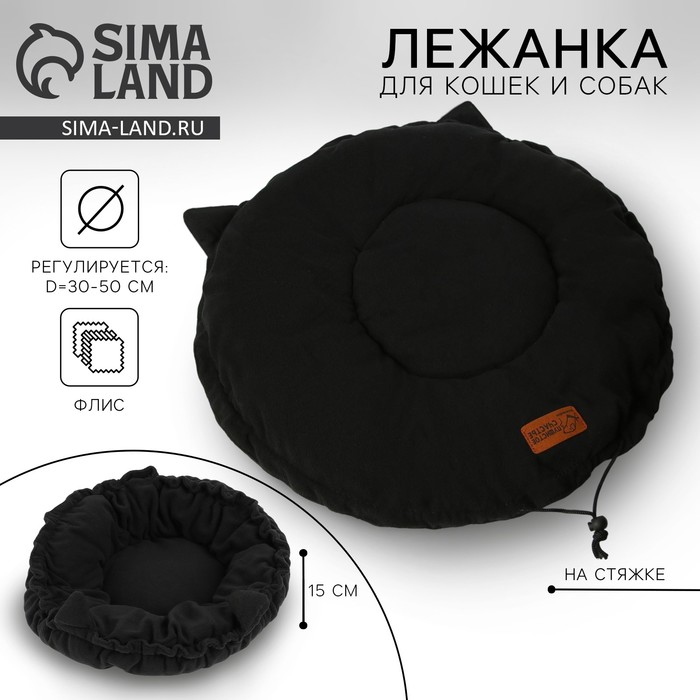 Лежанка для животных на стяжке с ушками, цвет чёрный 30-30-50 см
