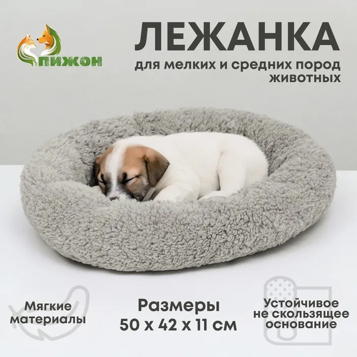 Лежанка для собак и кошек "Уют", мягкий мех, 50 х 42 х 11 см, серая