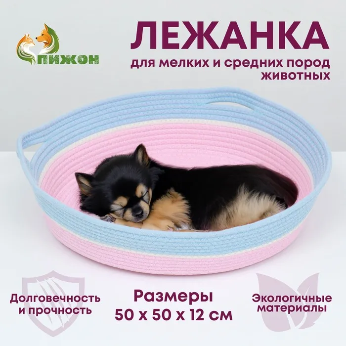 Экологичный лежак для животных, 50 х 50 х 12 см,вес до 25 кг, розово-голубой