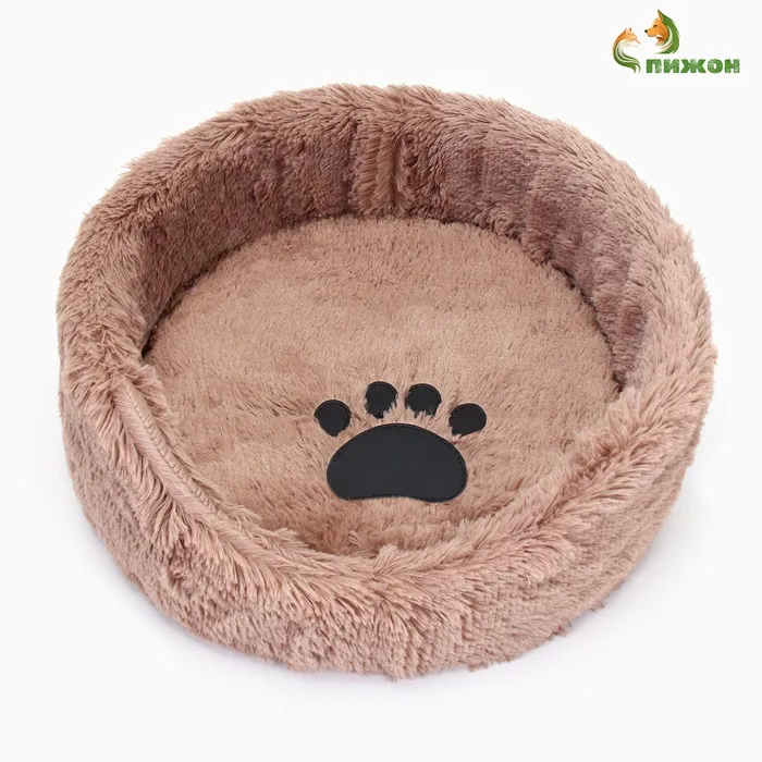 Лежанка для животных, с подушкой, мех, сатин, периотек, 40 х 40 х 16 см, коричневая