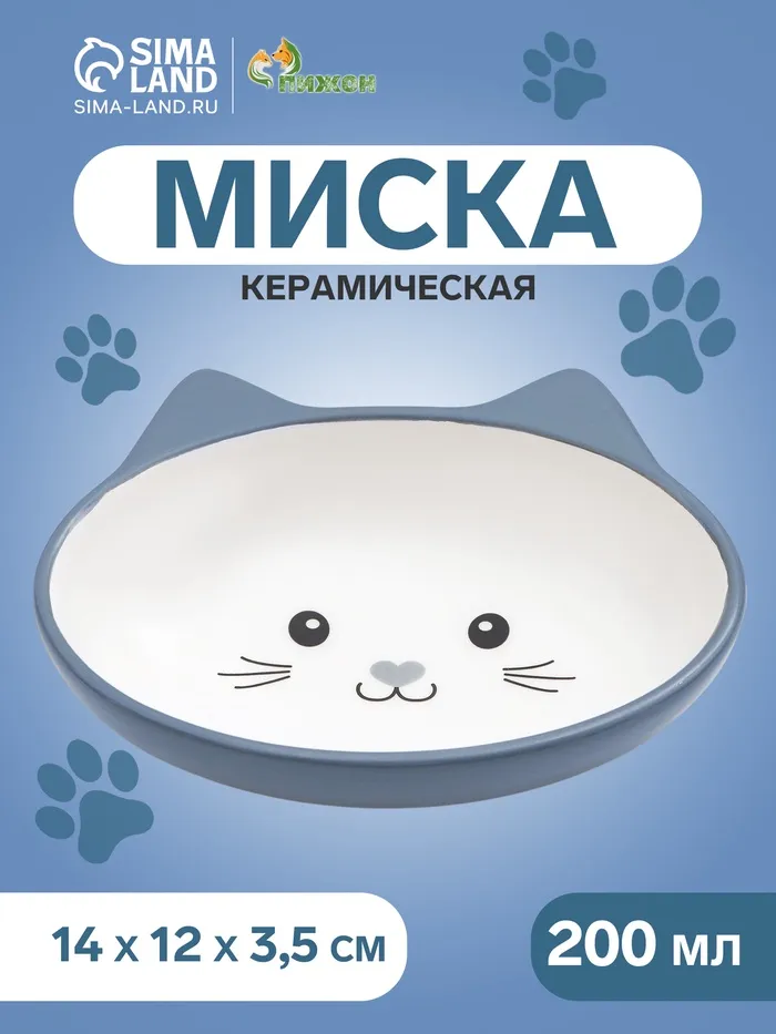 Миска керамическая «Лапки», 200 мл, для кошек и собак