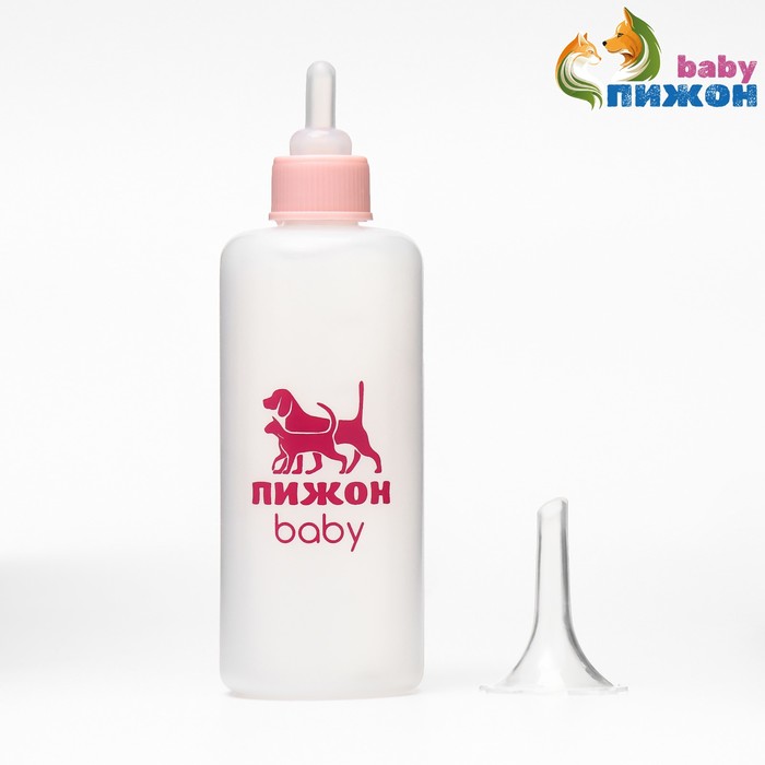 Бутылочка для вскармливания, 100 мл, с мерной шкалой, соска + воронка, пластик, розовая