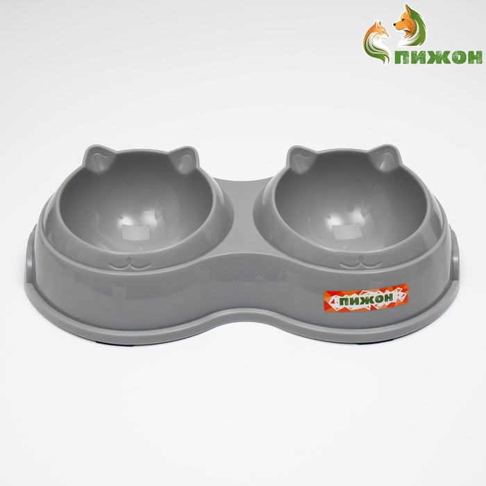 Миска двойная с прорезиненными ножками «Кошка» 27×14×3.5 см, черная