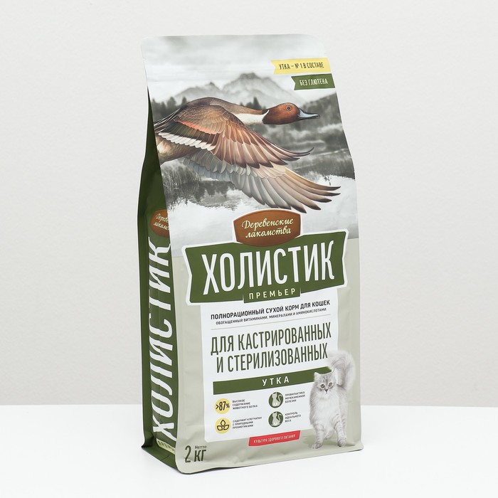 Сухой корм Холистик Премьер "Деревенские лакомства", д/стерил. и кастр. кош, утка, 2 кг