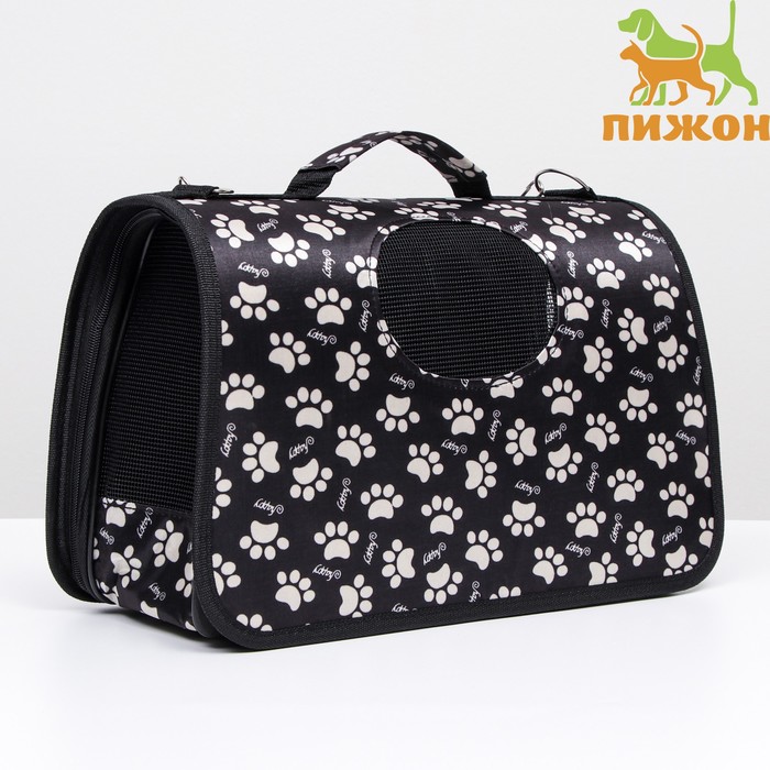 Сумка - переноска для животных «Лапки Happy», чёрная, размер S, 37.5×17×22 см