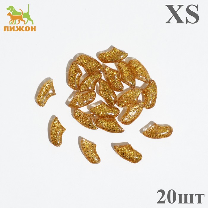 Накладные когти «Антицарапки», размер XS, набор 20 шт., золотые с блёстками