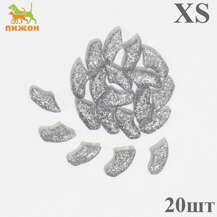 Накладные когти «Антицарапки», размер XS, набор 20 шт., серебристые с блёстками