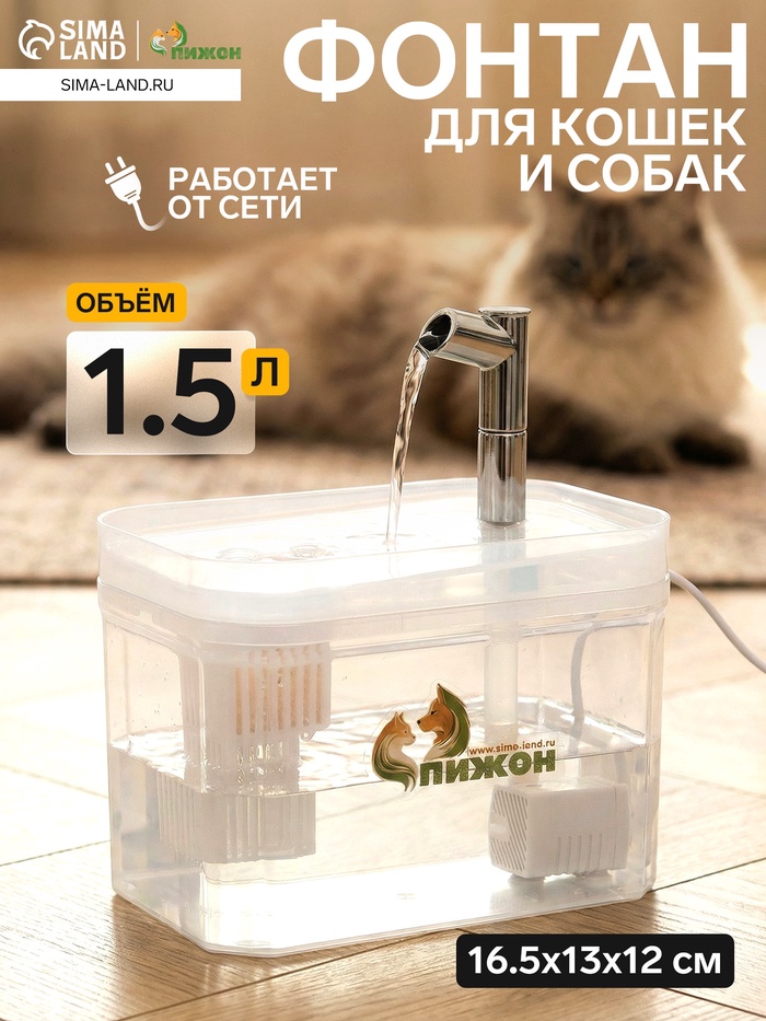 Фонтан для кошек и собак «Пижон», 1.5 л, 16.5×13×12 см, евророзетка, прозрачный