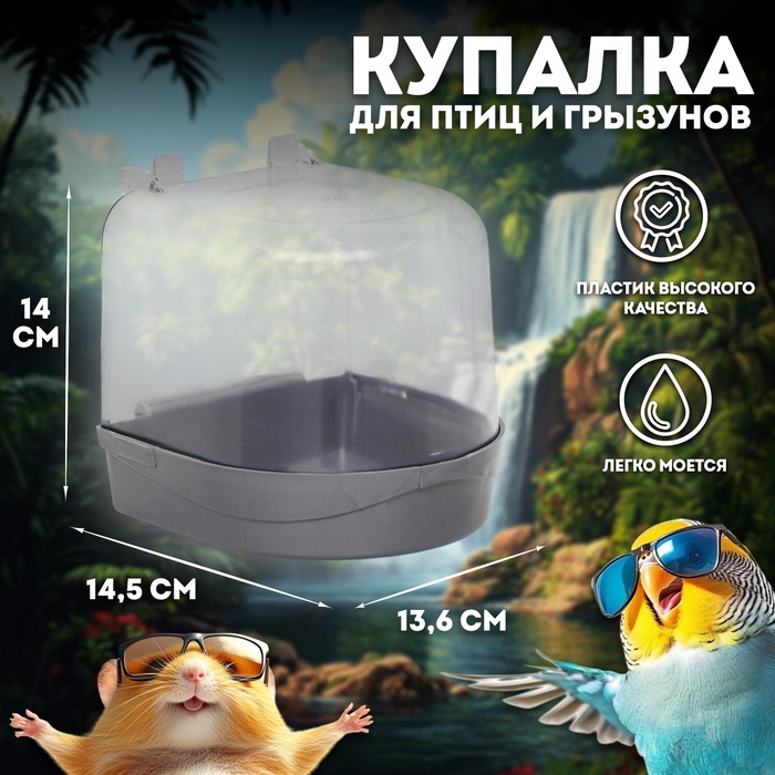 Купалка для птиц, внешняя 12 х 9 х 11 см, серая