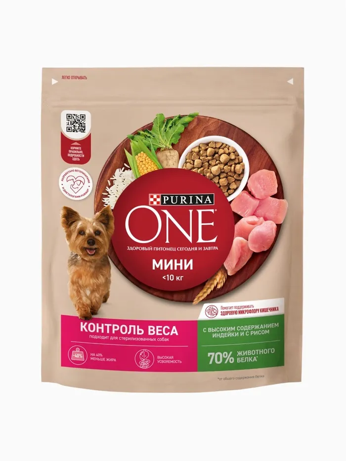 Сухой корм Purina One mini "Здоровый вес" для мелких пород, индейка/рис, 1,5 кг