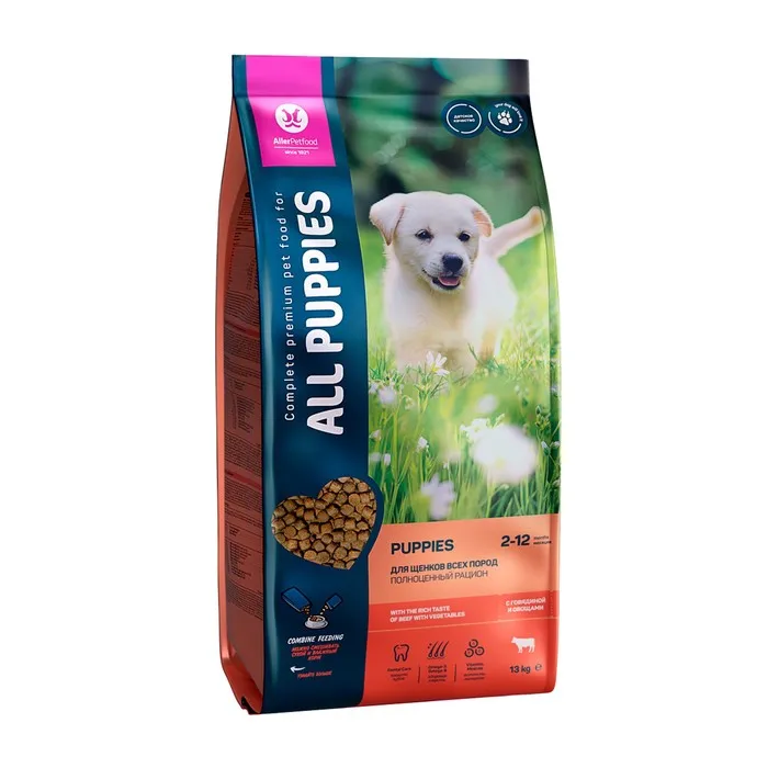Сухой корм "ALL PUPPIES" для щенков, говядина и овощи, 13 кг