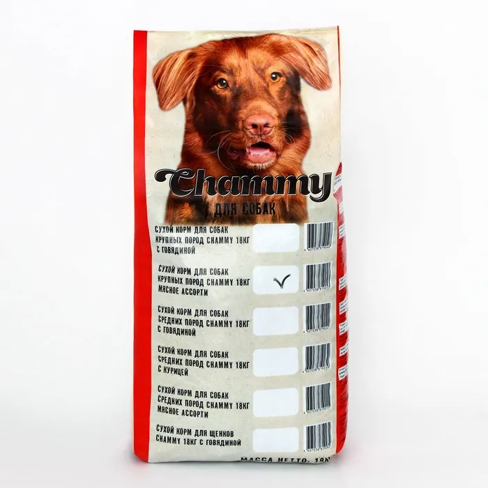 Сухой корм Chammy для собак крупных пород, мясное ассорти, 18 кг