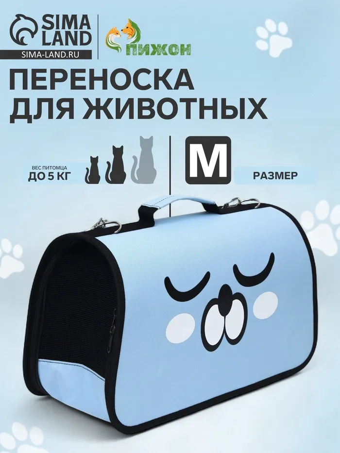 Сумка-переноска каркасная "Сонный пёсик", размер M, 45 х 21 х 27 см, голубая