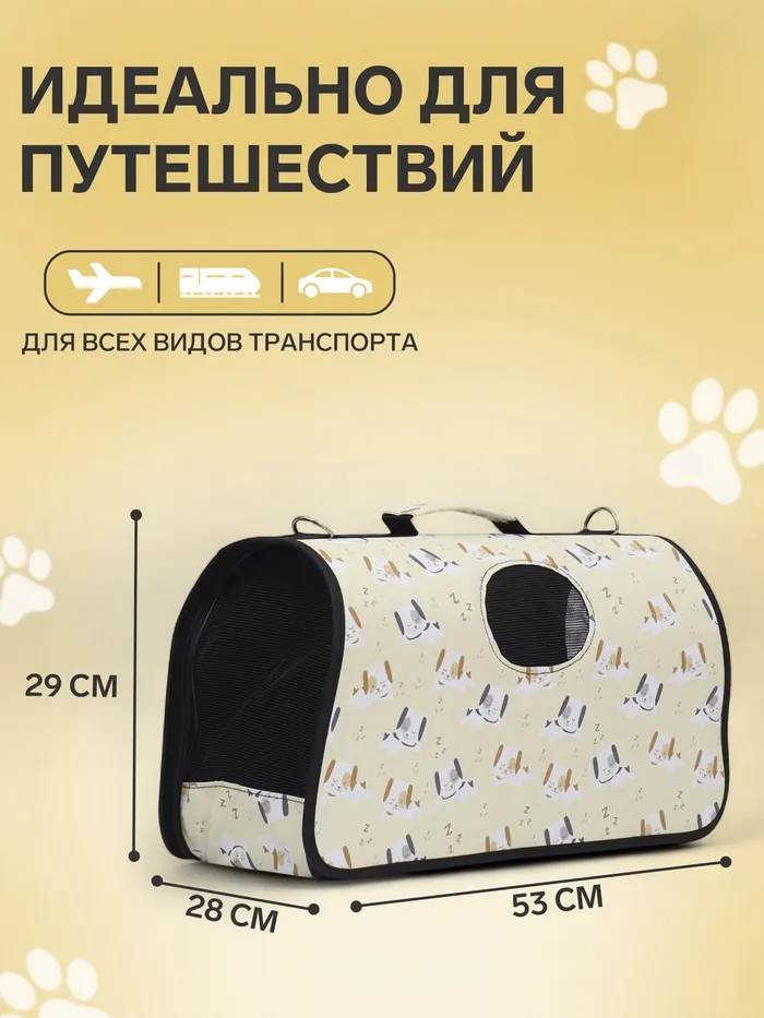 Сумка - переноска животных "Щенки", бежевая, размер L, 52 х 28 х 28 см