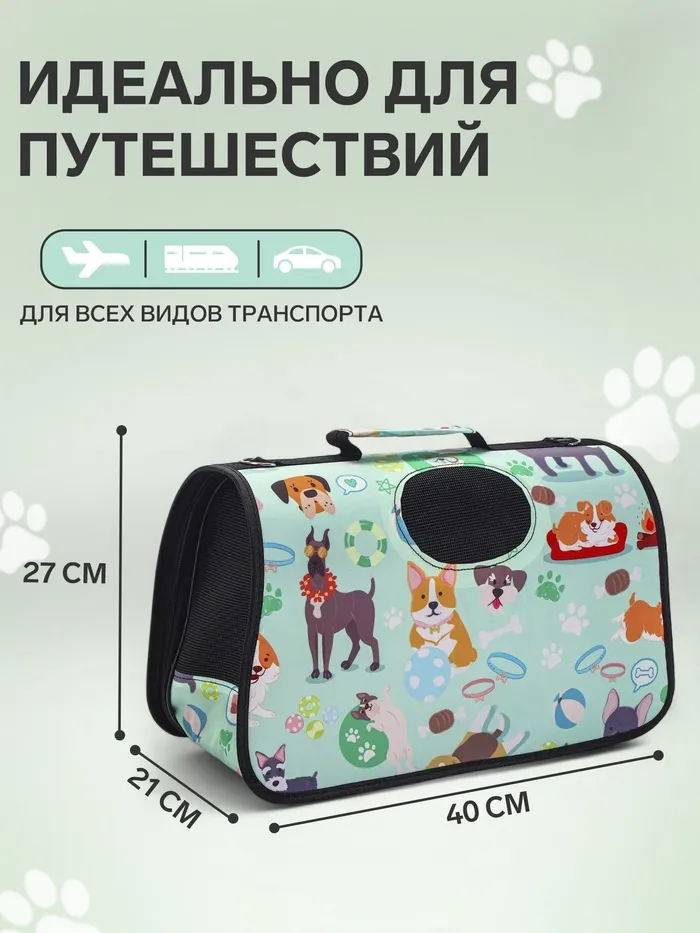 Сумка - переноска для животных с принтом, 40 х 25 х 26, микс цветов