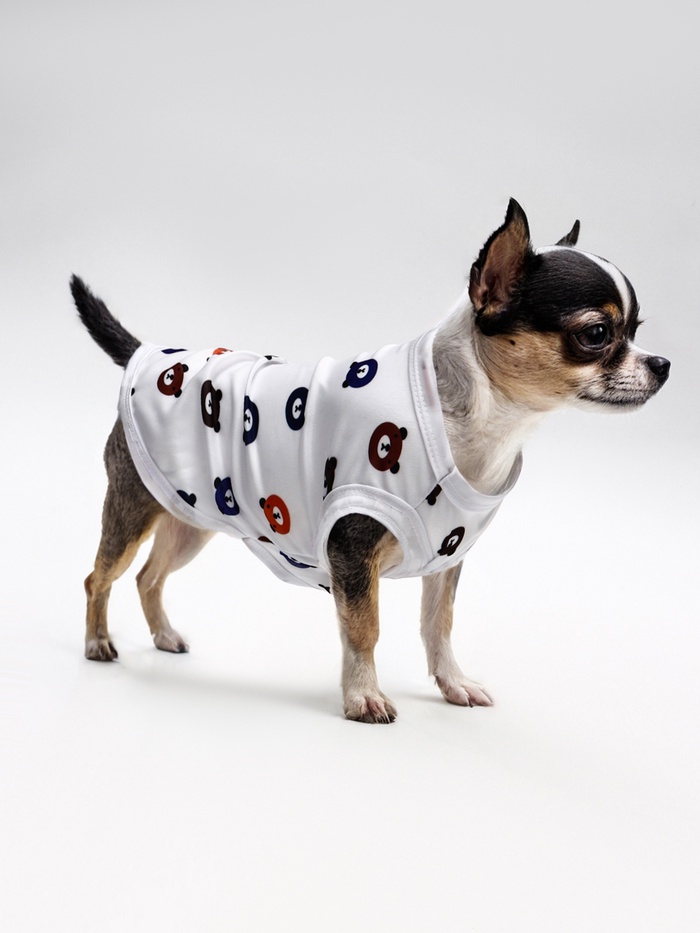 Футболка для животных "Мишка",S (ДС 25, ОГ 38 см) , белая